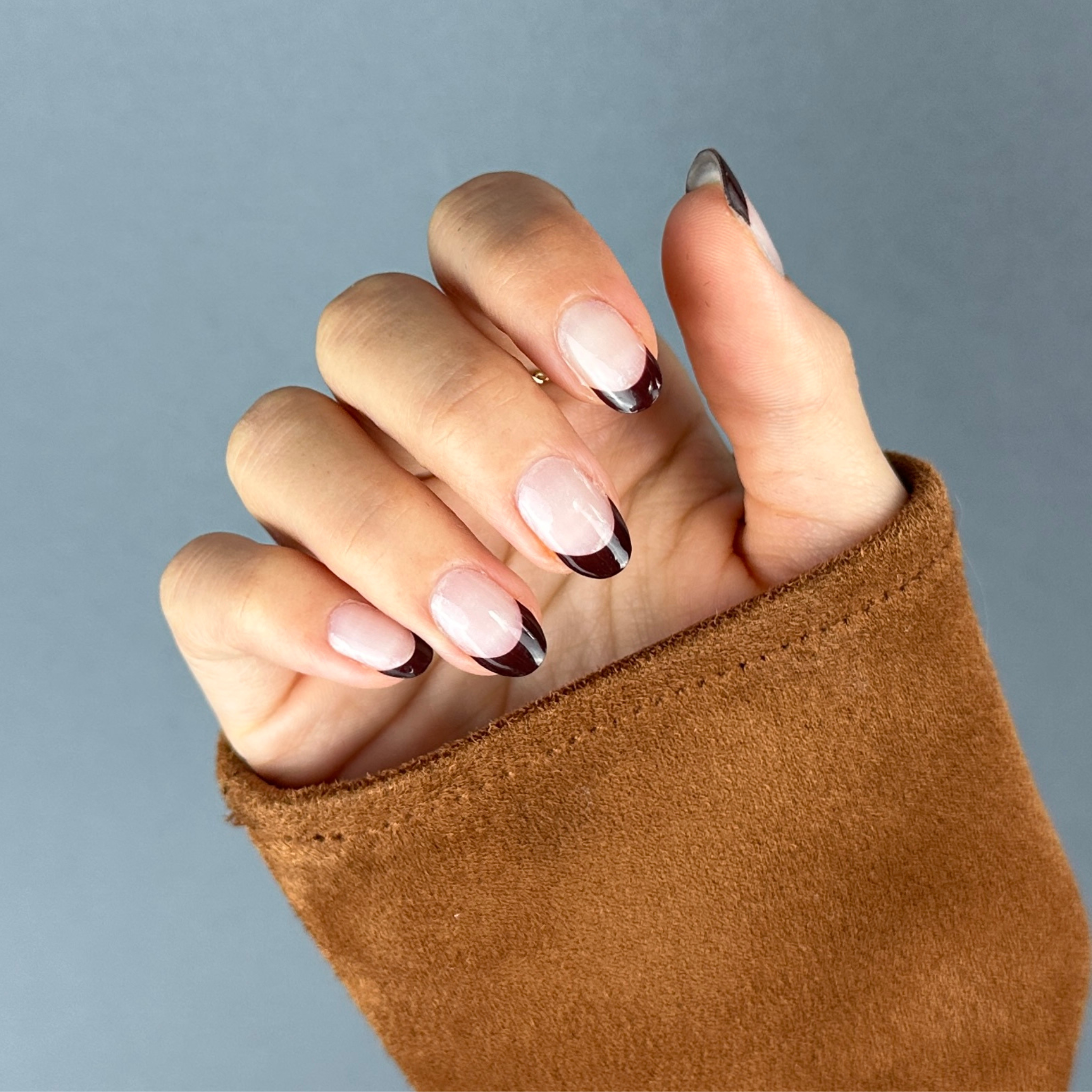 Au contraire, la pose se fait sans ponçage fort, et la dépose uniquement avec de l’huile. Aucun acétone, aucune lime abrasive, aucun risque d’abîmer l’ongle. Parfait pour les ongles cassants ou fragiles.