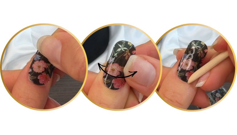 Appliquez de l’huile végétale ou une huile à cuticules sur les bords de chaque bande. Laissez agir, puis retirez doucement avec le bâtonnet en bois fourni. Le retrait est rapide, sans douleur ni résidu.