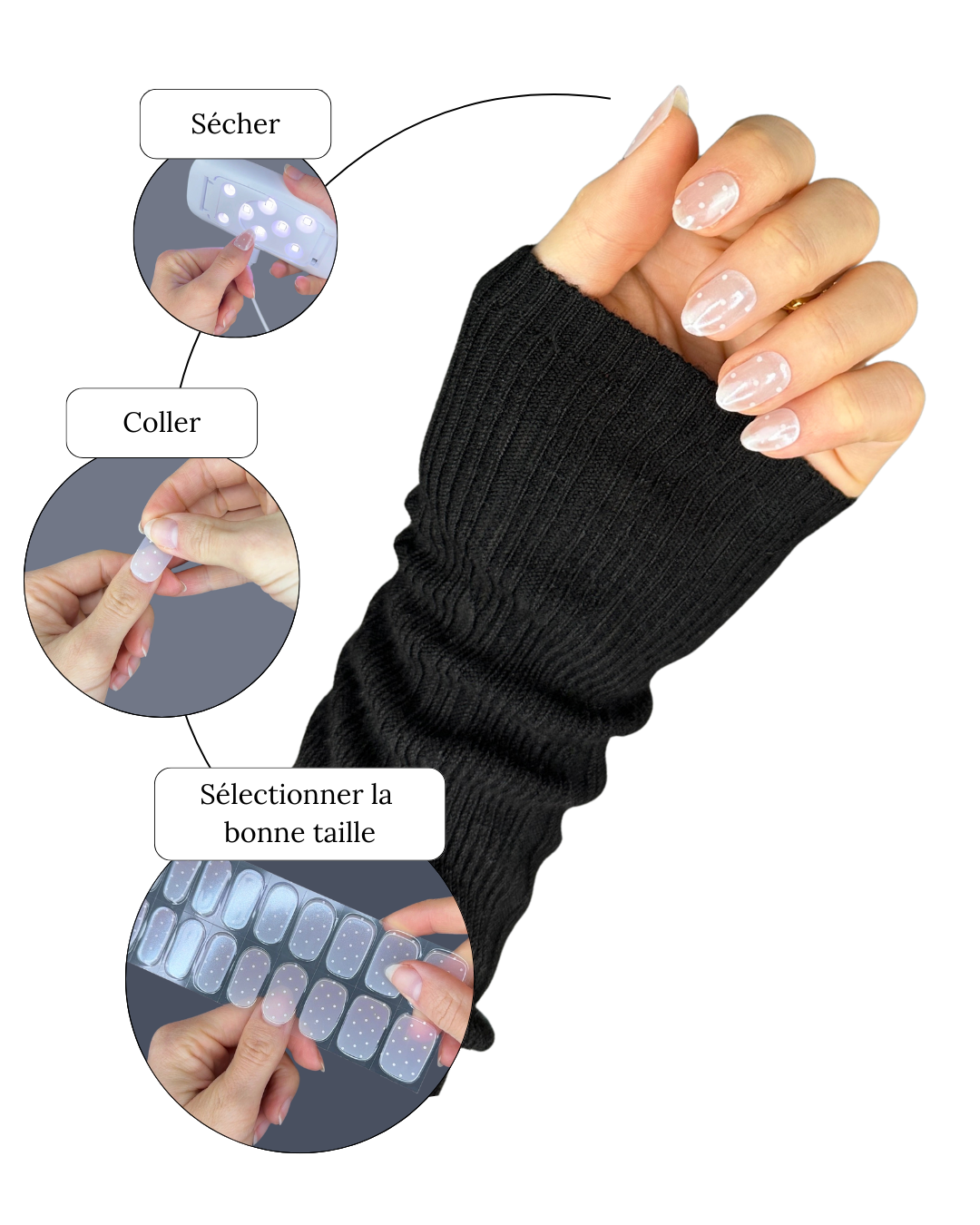 Nous proposons également des outils complémentaires qui facilitent la pose et permettent d’obtenir une manucure encore plus propre et professionnelle.